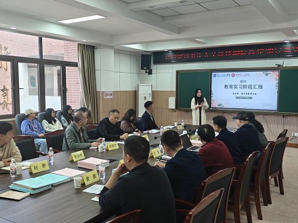 范家洪在听取汇报后,对实习生的表现给予高度评价。他介绍了重庆市兼善中学(龙凤校区)对实习生的实习培养为三个阶段:观摩学习阶段;实践参与阶段与独立顶岗阶段。采取三严(纪律要求严、指导过程严与考核标准严)三实(评价务实、过程扎实与成果真实)的管理路径。他强调,教育实习是师范生成长的重要环节,希望实习生继续发挥专业优势,在实践中不断提升教学能力。