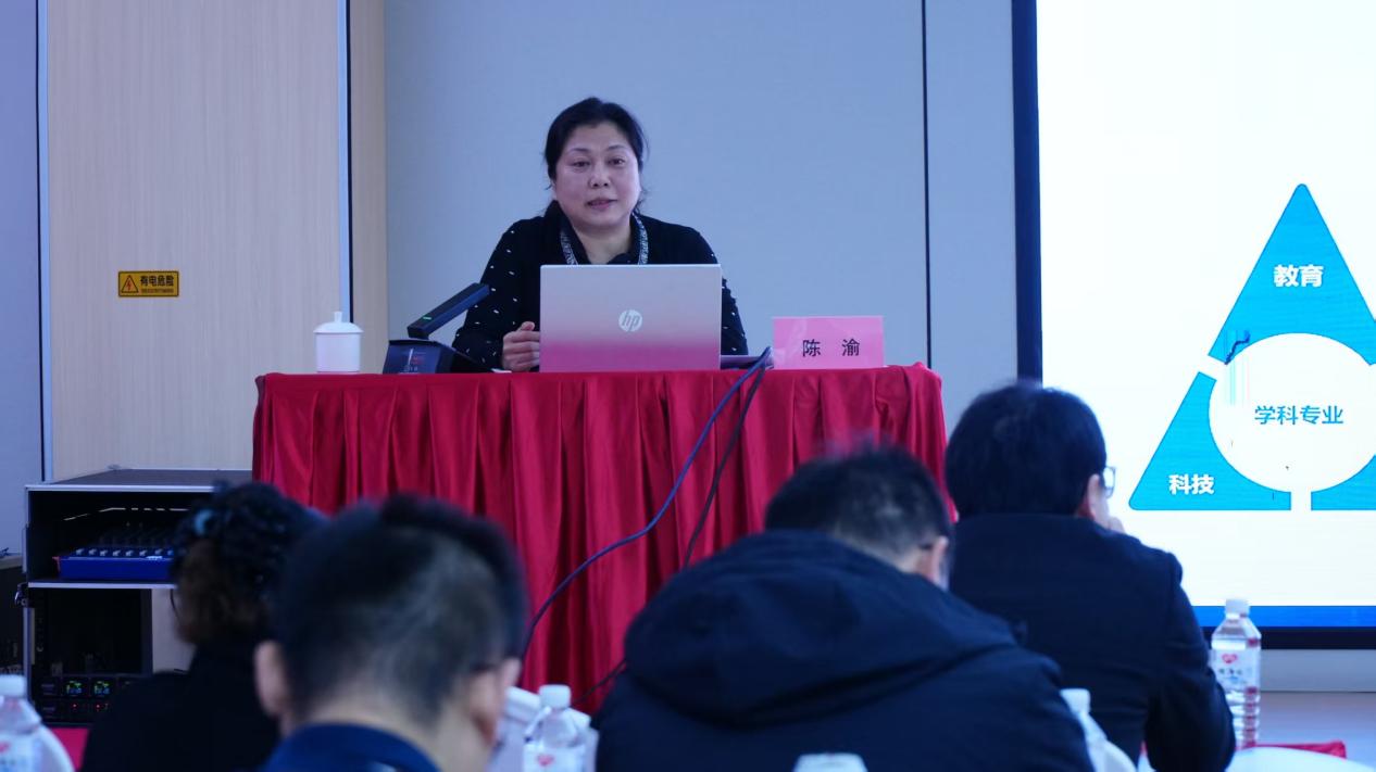 随后,重庆市教委二级巡视员陈渝研究员作了题为《以服务需求为导向,提升学科建设水平和人才培养质量》的首场专题报告。报告深刻剖析了当前学位与研究生教育的政策导向,针对学院发展实际,专家从师资队伍建设、科研平台搭建、学科交叉融合、质量保障体系完善等维度,提出了学院整体条件建设的具体对策,分享了学院与研究生教育提速发展的思路建议,为参会人员明晰了学位点建设路径,助力学院在高质量发展道路上精准发力、提质增效。