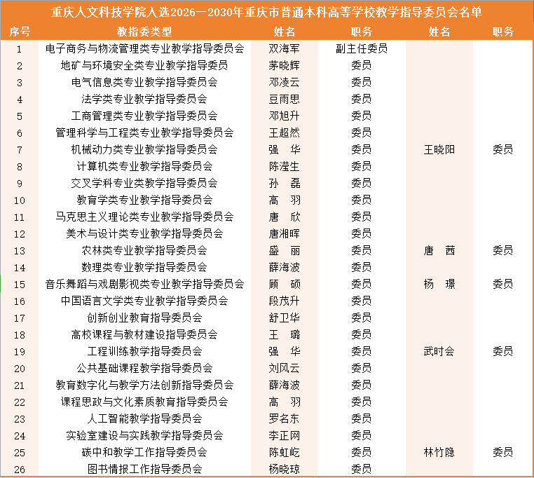 【喜报】我校28人入选2026—2030年重庆市普通本科高等学校教学指导委员会
